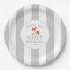 Fall Fox baby shower decor, neutral grey stripe Paper Plate