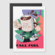 A fun and cozy autumn design featuring a cute walking coffee cup throwing up a peace sign, surrounded by falling autumn leaves. Perfect for coffee lovers and anyone who enjoys cozy fall vibes, seasonal style, and a playful aesthetic.
