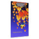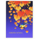 Fall scene: wild grape vines with orange, red, gold leaves and purple grape berries. A great tit sitting on a branch. Custom name, trendy hand-written font. Blue, bright yellow, black. Bold autumn colours, beautiful and vivid. Artwork based off of a vintage Japanese fine art print. Great for Thanksgiving but also anytime.
