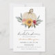 Fall in Love with this elegant bridal shower invitation featuring watercolor pumpkin and fall sunflower floral and botanical leaves.