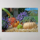Poster of a fall harvest of pumpkins, squash, broccoli, kale, and purple potted flowers. See matching wrapped canvas print. See the entire Thanksgiving Poster collection under the POSTERS & WALL DECALS category in the HOLIDAYS section.