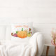 This throw pillow is shown in a autumn fall pumpkin print with a white background colour.