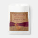 These affordable wedding favour bags are a great way to keep your "Fall in Love" theme going strong. These wedding favour bags have a simulated burlap pattern background with a burgundy ribbon running across the lower portion that has a cluster of autumn leaves in red, orange, green, and gold with a small golden orange wood look heart and orange twine bow dangling below. The top of the favour bag design area has a simulated Kraft paper look text area over the burlap pattern. The names of the bride and groom and the wedding date are printed in burgundy wine and burnt orange with orange lettering above that says, "Thank you for sharing our special day with us!" across the top. If you need additional matching items, please email your request to niteowlstudio@gmail.com or use the Zazzle chat feature to get in touch.