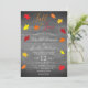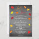 Fall in Love: Wedding invitation featuring maple and oak leaves in autumn harvest colours on a rustic grey wood background