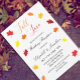 Fall in Love: Wedding reception invitation featuring maple and oak leaves in autumn harvest colours