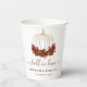 Fall In Love Autumn Pumpkin Bridal Shower. Design features white pumpkin with gold accents complemented with a beautiful autumn watercolor floral arrangement. Easy to customize names and date.
