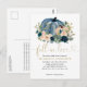 Fall in Love Blue Floral Pumpkin Bridal Shower Postcard