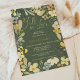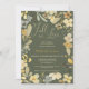 Fall in love boho floral autumn chic bridal shower featuring pretty green, yellow, mustard and khaki flowers frame with foliage and eucalyptus. A boho inspired fall autumn bridal shower theme with a modern heart script typography and a pretty floral pattern on the back on retro country green background