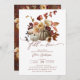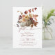 Our fall in love boho autumn bridal shower invitation features a beautiful collage of cabbage roses, garden roses, ranunculus, pumpkins, and leaves. The invitation is set on a white background with the date, time, and location of the bridal shower in a tasteful font. The bohemian design and autumnal colours add a touch of whimsy and romance, and the overall design is perfect for celebrating the upcoming bride with your loved ones in a stylish and festive way.