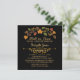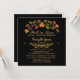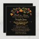 Elegant, fall season bridal luncheon wedding shower invitations in black and gold and classic fall colour leaves- Autumn leaves and berries design adorns the top in fall colours of red, brown, orange, golden yellow and green. Below reads 'Fall in Love Bridal Luncheon Honouring' with the bride to be's name below in matching gold, pretty script. Below her name is a chic, gold metallic look scroll divider. Bridal luncheon details below that in gold hued lettering, including RSVP and store registry details. Back has black background, which may be changed to any colour you prefer. In sophisticated, black and gold with stylish autumn accents.
