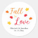 Fall in love custom event gifts with red, orange and yellow autumn colour palette with maple leaves. Text can be customized for a wedding, bridal shower, baby shower or any other event
