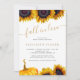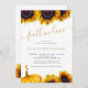 Modern yellow gold boho chic sunflowers and pumpkin Fall in Love bridal shower invitation with chic golden handwriting calligraphy script. +++++ Suitable for autumn fall rustic country garden backyard farmhouse bridal shower parties. ++++++++++++ Digital download available