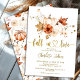 Rustic and elegant bridal shower invitation featuring hand painted watercolor white pumpkins, fall leaves and flowers with golden "fall in love" wording and fall floral pattern in the back. Please get in touch via chat if you need customization or matching items.
