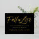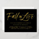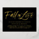 Fall in love! Invite guests to your event with this customizable gold foil engagement party invitation. It features brush lettering and simple typography. Personalize by adding your event details. This black and gold engagement party invitation is perfect for fall or autumn engagement parties. Matching items are available.
