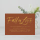 Fall in love! Invite guests to your event with this customizable gold foil engagement party invitation. It features brush lettering and simple typography. Personalize by adding your event details. This terracotta engagement party invitation is perfect for fall or autumn engagement parties. Matching items are available.