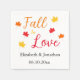 Fall in love custom event gifts with red, orange and yellow autumn colour palette with maple leaves. Text can be customized for a wedding, bridal shower, baby shower or any other event