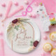Celebrate in Autumn Style with this customizable paper plate from our Fall in Love bridal shower collection. Featuring a crisp white background with an earthy clay and beige arch outlined in terracotta rust orange, this elegant design showcases the words Fall in Love above space for the bride’s name and event details. A stunning watercolor bouquet of eucalyptus leaves, pheasant feathers, dried pampas grass, blush pink roses, golden autumn leaves, and a deep burgundy mum adds rich seasonal charm. Perfect for bridal showers, engagement parties, and autumn celebrations. Complete your look with matching invitations, napkins, cups, favour tags, and more from the Fall in Love suite for a beautifully coordinated event.