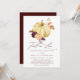 This bridal shower invitation features a watercolor yellow pumpkins adorned with burgundy, maroon, and burnt orange flowers over fall leaves. For more advanced customization of this design, Please click the "Customize further" link. Matching items are also available.