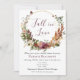 This is a rustic and simple bridal shower invitation, using an elegant watercolor floral and greenery autumnal wreath and the text "Fall in Love". The colour palette features rich fall colours such as burgundy, burnt orange, terracotta, deep green, berry and gold. Easily customize all of the text as required using the provided text template. Please contact the designer for any queries regarding this design.