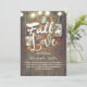 Mason jar lights and fall leaves baby shower invitations 'Fall in Love'