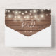 All in one wedding invitation featuring pretty string lights, hand-drawn floral garland and chic typography on a rustic wood panels background. The invitation includes a perforated RSVP card that can be individually addressed or left blank so you can handwrite your guest's address details. Designed by Thisisnotme©