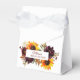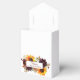 Fall themed tent style favour boxes are the perfect accent for your autumn wedding or bridal shower. The burgundy blooms and bright sunflowers really pop against the dried leaves. Change the wording and your desired colour or font style.