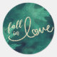 Fall in Love with Autumn | Jade Green and Gold Classic Round Sticker