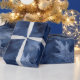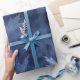 Fall in Love with Autumn | Navy Blue Leaf Pattern Wrapping Paper