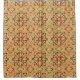 This shower curtain has a geometric design of manipulated squares in orange, brown, shades of green on a field of cream. If you want the same design with different colours, message me.