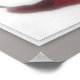 Startling red leaf backlit with sunlight, photographed on reflective white tile. With decorative border. Available in various sizes with or without framing. By Dwight Bennett from Natureworld Art.