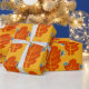 Cute autumn wrapping paper with a pattern of cartoon bugs with huge eyes who nibble on an orange leaf. The three bugs are blue and very cute. This seasonal pattern will appeal to a nature lover who likes funny cartoon characters and the season fall.