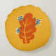 Fall Leaf With Funny And Cute Bugs - Yellow Orange Round Pillow