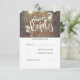 Mason jar lights and fall leaves, wheat and barn wood rustic wedding RSVP card
