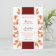 Stunning and elegant Wedding Invitation Card, features a stylish typographical design with a beautiful burnt orange watercolor leaf illustration and an earthy brown colour theme. The colour carries onto the back of the card. This piece of wedding stationery is ready for you to customize with the details of your special day. Part of an ever-growing collection, please browse the Fall Leaves Burnt Orange Wedding Suite for matching items.