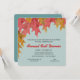 This invitation features a photo graphic of vibrant red and gold fall leaves across the top. The background is a light teal colour and features customizable text for your dinner invitation details. This invitation is perfect for a professional gathering.