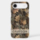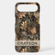 Customize this fall leaves camouflage iPhone 17 air case with your name in a trendy modern CAP font in brown on opaque cream. It's masculine and perfect for your favorite military, hunting, country or outdoorsman!