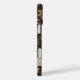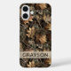 Customize this fall leaves camouflage iPhone 16 plus case with your name in a trendy modern CAP font in brown on opaque cream. It's masculine and perfect for your favorite military, hunting, country or outdoorsman!