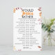 Would She Rather game for bachelorette or hen parties. The content is fully customizable - you can change some or all of the questions. This is a fun ice-breaker for parties - everyone fills in the quiz and the winner is the player with the most correct answers. Questions are suitable for all ages.