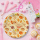 A unique fall pattern with golden leaves and berries, footballs, pumpkins, pumpkin spice coffee drinks and doughnuts, too! It's all the things I love about the fall season. This custom design is fun on paper party plates. You can add a different background colour if you like. Looks nice on shades of black, cream, wine, white, blues and more colours. Change the size of the pattern to make it just right for you! Great for any fall occasion!
