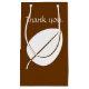 Package gifts for your attendants, groomsmen, family, and anyone else that deserves a little something special in these autumn-themed gift bags, perfect for any fall wedding or event. The front of this chocolate brown bag is decorated with a white fall leaf and a simple, "Thank you." The back has a matching fall leaf and sample text that you can customize to fit the details of your special day. Be sure to check out the other products in the Fall Leaves in Chocolate set to create a truly coordinated look for your event.
