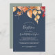 This fall leaves navy blue and burgundy baptism invitation is perfect for an October baby dedication. The modern rustic design features stunning hand painted watercolor autumn leaves in colourful shades of yellow, burnt orange, and burgundy red which pops on a navy blue background.
