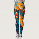 Fall leaves and rowan berry Leggings. Abstract modern autumn nature oil painted art in blue red orange colours.