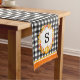 This 16 x 90 black gingham runner with striped edge, watercolor leaves and pumpkin wreath, and your initial would look fabulous on your table or side table. It's festive and fun yet classic and traditional. Add that little pop of fall!