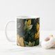 A decorative botanical pattern featuring green and yellow fall leaves.