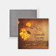 This stylish wedding Save the date square refrigerator magnet has a tan and brown vintage distressed background with a grapevine branch on the top left that has some yellow, orange, red, and brown fall leaves and some "grape like" shapes hanging down. On the bottom right, you can easily personalize this with the names of the bride and groom along with the date of the upcoming wedding ceremony. Save the Date is written in orange at the bottom in a trendy cursive font.