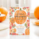 Celebrate the upcoming arrival of your little one with this adorable fall Halloween pumpkin baby shower invitation! Featuring a hand-painted watercolor pumpkin as the centerpiece, this invite radiates warmth and charm. Surrounding the pumpkin are beautifully illustrated autumn florals in shades of orange, red, and green, creating a delightful seasonal backdrop. The playful script "A Sweet Little Pumpkin is on Its Way!" adds a whimsical touch, perfect for welcoming your guests to the festive occasion. Personalized details about the event are elegantly displayed below, making this invitation a perfect blend of rustic charm and seasonal joy.