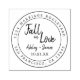 Rustic, modern and simple wedding round return address stamp with the text Fall in Love, your names and wedding date in off-black elegant handwritten script calligraphy. Simply add your names, address and wedding date. This rsvp stamp is complementary to the Fall in Love wedding collection. Exclusively designed for you by Happy Dolphin Studio. If you need any help or matching products please contact us at happydolphinstudio@outlook.com. We're happy to help you make your wedding the most beautiful day!