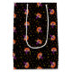 This fun fall gift bag features colourful forest mushrooms with a black background with stars.