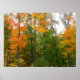 Maple trees have their own unique colours in the fall - they turn pretty shades of yellow and orange. Here's a photo with maple trees in varying fall colours. This picture is also featured as a widescreen wallpaper on www.mlewallpapers.com. Check out our store for more colourful fall foliage pictures.