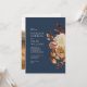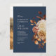 This elegant and rustic wedding invitation features hand-painted watercolor burnt orange and terracotta leaves, cream and beige dahlias, and beautiful rust-coloured roses perfect for a fall or autumn wedding! The back of the invite has a photo for personalizing. Find matching items in the Navy Blue Fall Romance Collection.